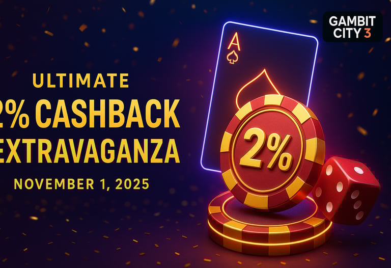 Join the Ultimate 2% Cashback Extravaganza today at GAMBIT CITY 3 — where every bet gives back!